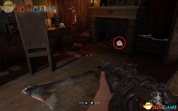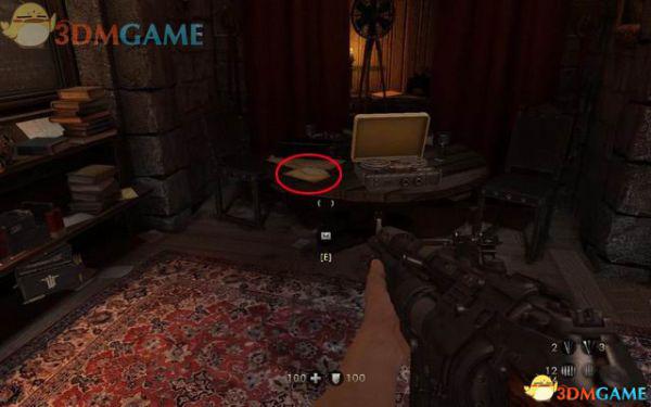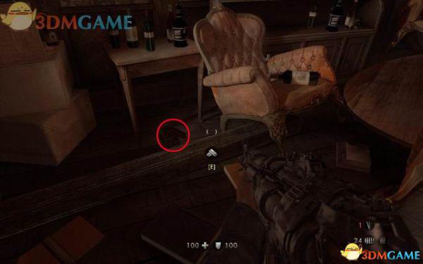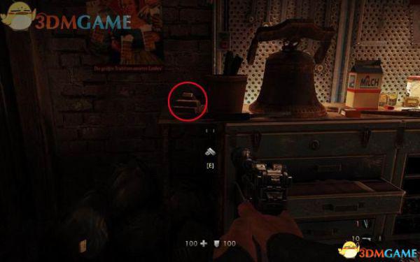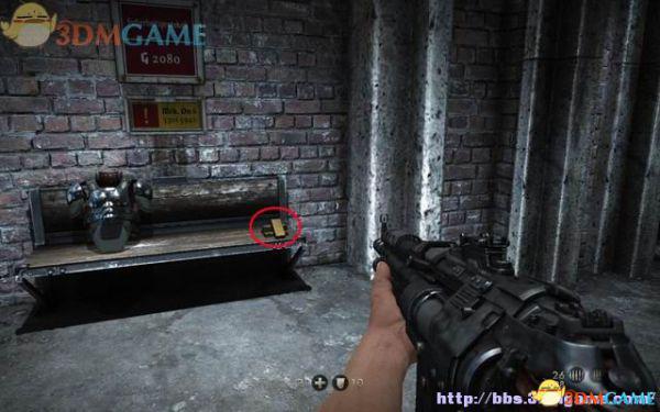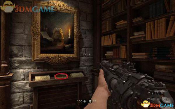 一路屠杀变异德兵,来到一间卧室调查床底,拾取黄金收藏物#43。