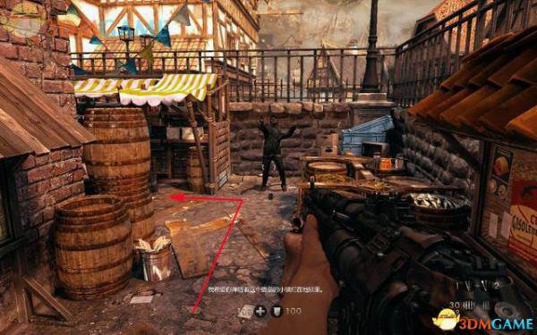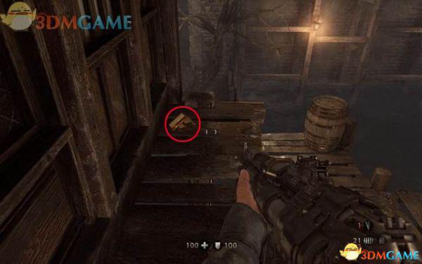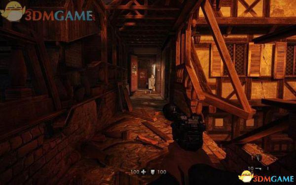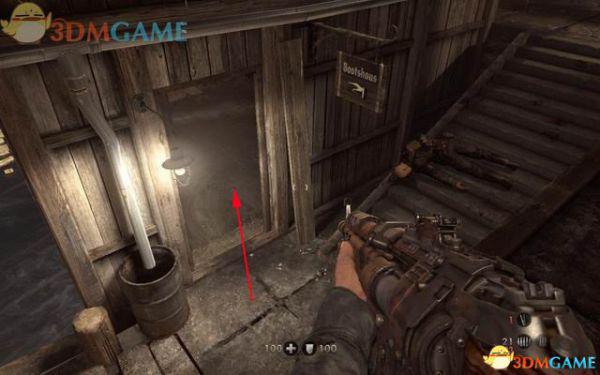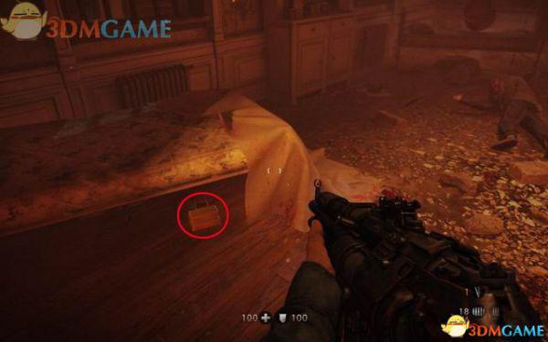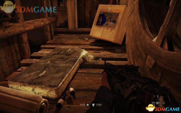 这里纸箱上有德军总部的画报,和床铺互动进入梦魇关卡。