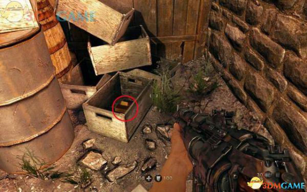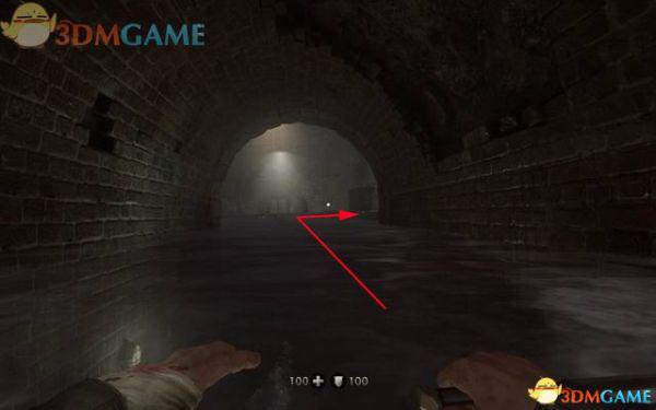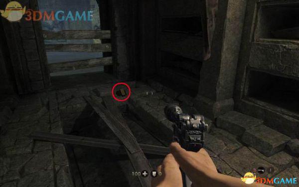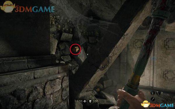 进到左边的拱洞里,打碎图中的木箱拾取黄金收藏物#50。