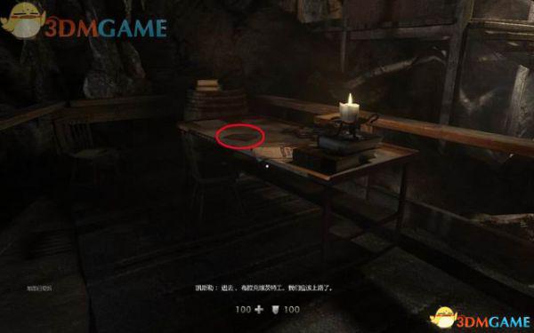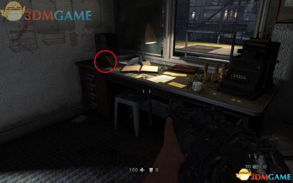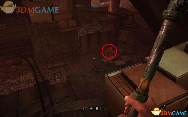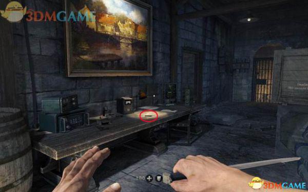 拿完黄金收藏物#10,找到如图的桌子,从上面拾取一把钥匙。
