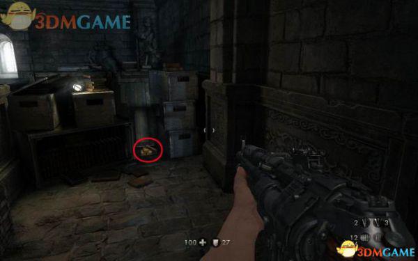 进到门里不要跳下坑,贴边转过去,从地上发现黄金收藏物#11。