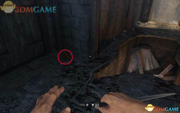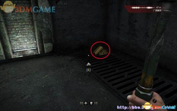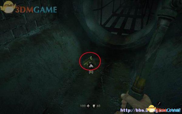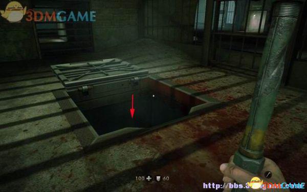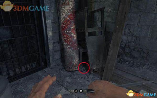 来到如图的圆形牢房区域,进到地上有血迹的C4号牢房,撬开地上的盖板。