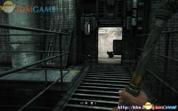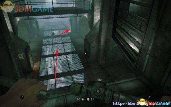 离开电梯看到空中缆车,先不要进去。往右手边走,用钥匙打开一道铁栅门,进到一个秘密区域。