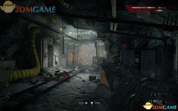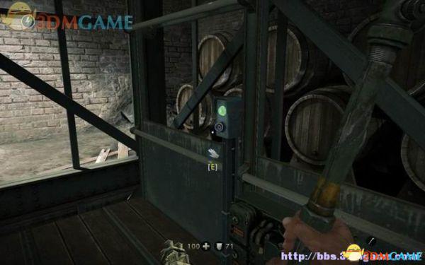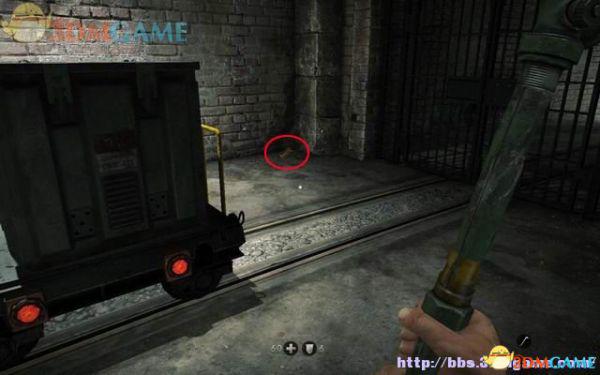 乘升降机下至矿坑底层,来到有矿车和粗大的黄色管道这里,和德兵展开激战。