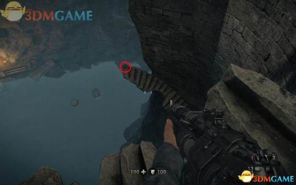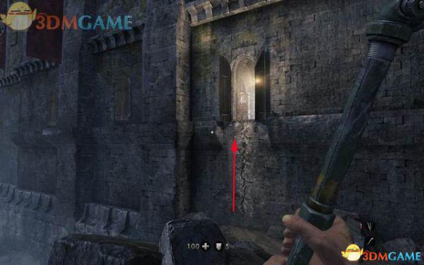由酒窖坠落到水潭中后,由图示的墙壁爬上去。