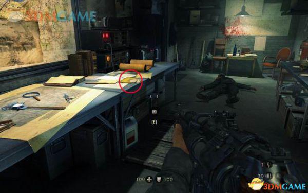 关卡开始,在塌陷巨坑的左侧进到如图的房间,这里是一处指挥部,里面有一名军官。