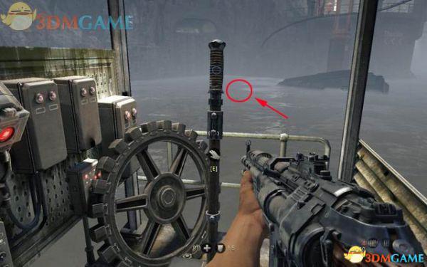 在关卡开始从快艇登陆上岸,清理敌兵后扳动码头上的这支拉杆,打开前方的闸门。