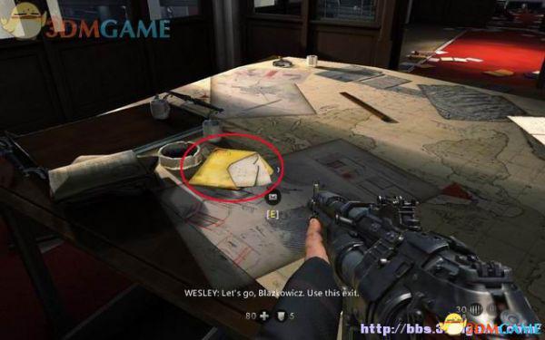 进到作战指挥室,调查桌上的地图找到信件#1。
