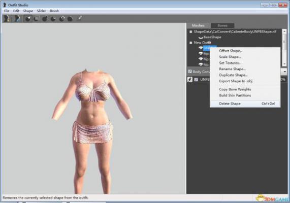 7.把滑块拉致最右边,衣服和那坨肉就变成标准CBBE。