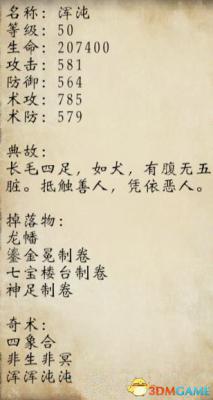 乍看之下,混沌似乎和饕餮是名副其实的同等凶物,除了HP较少和魔攻防以外似乎没有特别之处...但此战压力及其得大,混沌的攻击会造成晕眩状态,让状态下成员在期间内不能行动,这十分容易造成整个队伍崩盘。“非生非冥”则会造成中毒状态,高频的不断损血让队伍也十分狼狈。而其他奇术则都是按照术攻为基数的高伤攻击,基本对于低等级的队伍来说就是秒团的技能...
