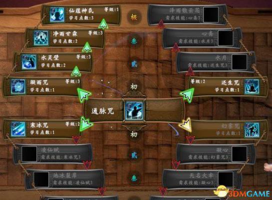 沐月的 净雨甘霖 也是需要11点,作为保险起见,LZ还点出了这一系的终极技 华蕴神氛 (沐月死亡时全体回复HP),这样不至于在她意外死亡之后被混沌的连续群攻一波带走,虽然战斗中 沐月 应该极少阵亡。作为攻击手段,请确保至少有一级 寒冰咒。这样基础技能值需求为也是19点,有余裕的话请增加 还生咒 和提高已有关键技能。