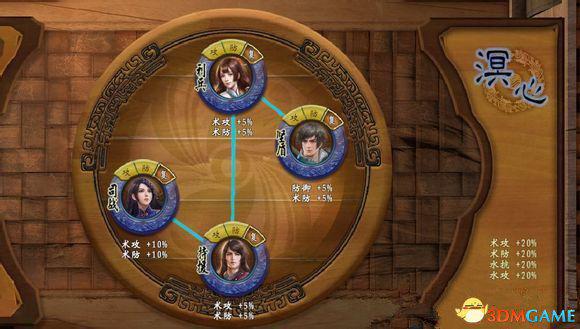 战阵方面,LZ选择的是能够进一步提高 沐月 输出能力的 溟心(水)阵。沐月 当然是站在 司战 位置(+10%术攻/术防),司空宇 选择的是 坚盾 位置,经LZ观察(也许是错觉)这个位置比较容易承受攻击。其余人员位置随意,因为加成也是一样的。