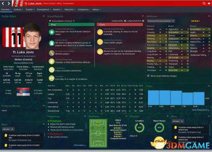 FM15给我最大惊喜的小牛没有之一,俱乐部是塞联的Crvena Zvezda(这个俱乐部我都没听过),开档貌似只有16岁,所以第一年搞定的可能性不大,我第二年高价5m英镑砸过来,给Fierro神打替补外加学徒,打到第二个赛季,作为替补效率就已经爆种了,同样属性分配完美合理的一个前锋,这精神身体和射门,而且比赛中经常会上演禁区外雷射,你是不是想起了某个人?P.S. 这作小牛前锋很多,跟国外朋友聊天他们都说Boye更厉害一些,我目前还没有自己实际用到过,但是Jovic还是我个人推荐的,用过的都知道!