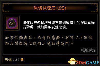 一旦你获得了秘境试炼石,你就可以准备好进入所谓的试炼之境了。想要进入试炼之境,在任意一个城镇中找到奈非天石碑,右键点击,并且把你的试炼石放入窗口的上方。点击“接受”后你的试炼之旅就要开始了。在此之前请先确认好你的技能与装备,因为一旦进入试炼领域,在试炼结束前你是无法改动它们的。