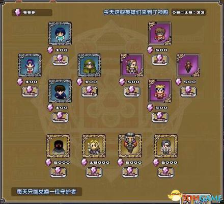 由于招募的随机性,在很多时候,我们并不能总是如愿的得到自己想要获得的英雄,同时又会积累许多对自己无用的英雄,因此像素骑士团中的神殿系统在这过程中起到了很好的补充。游戏中玩家对于自己不需要的英雄可以进行解雇,解雇后可按英雄品质获得一定量的荣誉碎片,而游戏中的神殿每天刷新,刷新后出现一批新的英雄,包括蓝色、紫色、金色等品质,玩家可利用荣誉碎片任意招募一位英雄,但在神殿中玩家每天只有一个招募名额,所以需要玩家谨慎选择哟。