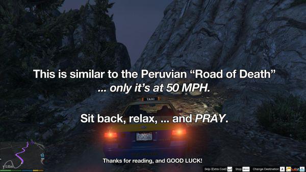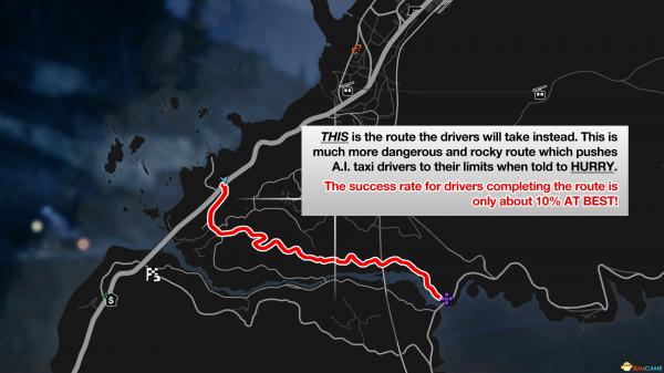 “出租车司机AI大挑战”是由一帮玩家自发设立的《侠盗猎车5》内部的小游戏,主要玩法就是选择一个路线,然后招来一辆出租车。因为出租车司机本身的AI设定,即使存在非常明显的捷径,出粗车也会沿着一条非常长的路线行驶。而这条路线充满了各种“天险”和挑战,道路上满是岩石,非常崎岖不平。
