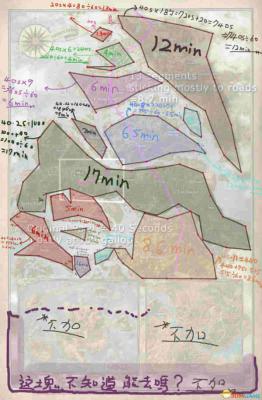 那如果加上地图的最下方的话,我估计要22条,40*22=880,880/60=15分钟,1小时30分(没加地图最下面的全岛)+15分钟= 1小时45,1小时45+山路或歪歪区区的路=1小时50分钟。