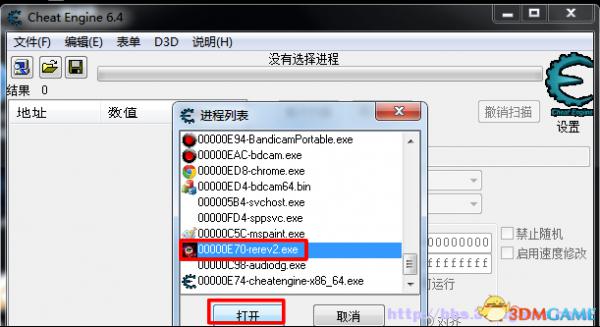 4、打开ce,并选择启示录2的进程: