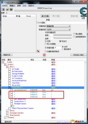 6.依次点击下面的Enable——Scripts——Misc.——Camera Mod .3,出现X,Y,Z