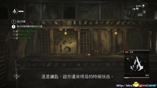 step22.取得钥匙之后,跳到黄金甲守卫右侧岩石表面的木条上,然后移动到正面后按C键跌落到地面,此时再去到洪立威的监仓门前将监狱门打开,这样就可以完成次要目标。