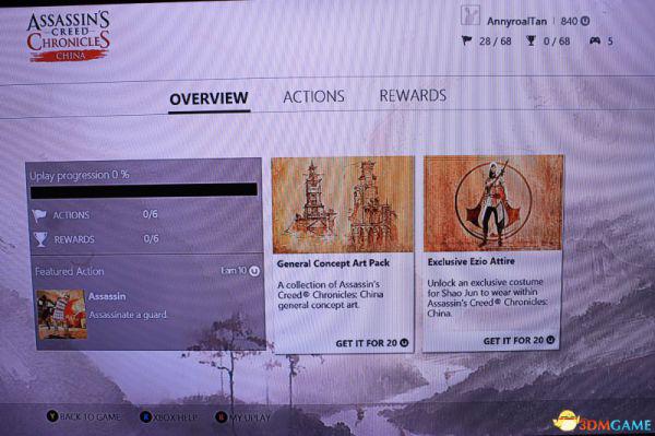 这里可以登陆UPLAY购买游戏额外内容、查看UPLAY客户端、以及了解《刺客信条:中国编年史》相关成就。