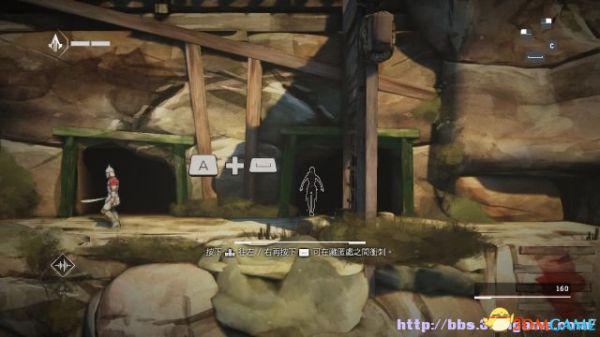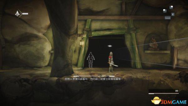 这儿会有两个洞穴的躲藏点,趁士兵往左侧走去时,进入到右边第一个躲藏点,当士兵往少芸所处位置右侧走去时,按A键+空格键,就可以让少芸快速转移到左侧的躲藏点内(这就相当于是“快速转移掩体”)。