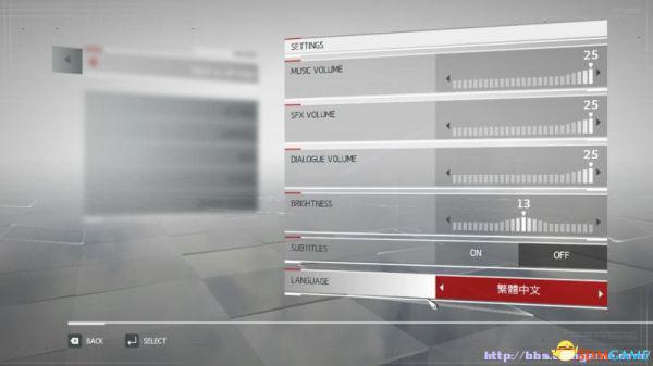 语言:更改游戏显示、字幕的语言,初次启动游戏时为英文,玩家可以手动将语言改为繁体中文。