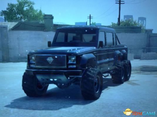 值得一提的它估计是首次在gta里采用6轮AWD四驱的民用越野车,卧槽全地形啊,尼玛驶过各个地形都不是个事啊。另外,前部和后部都有钢板加固保护底盘,我想这车底部都被包裹保护了吧。同时,这车应该是和大脚霸王一个类型的,都是高强度越野用皮卡,那么这车一下子坐六个基佬应该没问题,没事嘛顺便运运尸体到荒郊野岭妥妥的