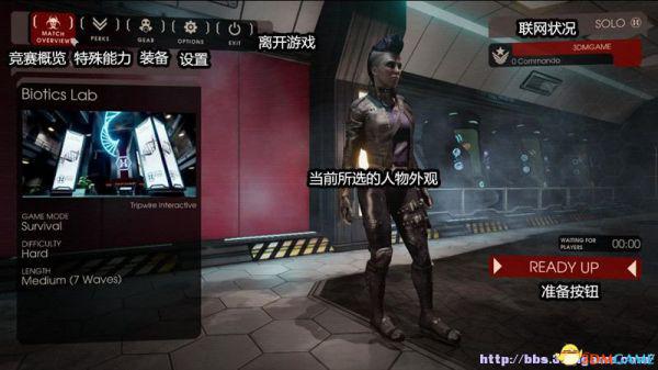 联网状况:(屏幕右上方)这里显示玩家是处于多人游戏或单人游戏。这一项是默认变更的,如果游戏无法正常联网,它就会默认为“单人游戏(Solo)”。
