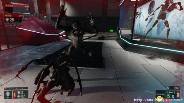 生还者模式,对于玩过《杀戮间》1代的读者都清楚,它这个模式中很容易在场景中发现弹药箱,但是针筒等医疗物资就甚少,所以要节省救治针筒的使用次数,每当一波攻势结束之后,就得去到自动贩卖机购买足够得医疗用品。