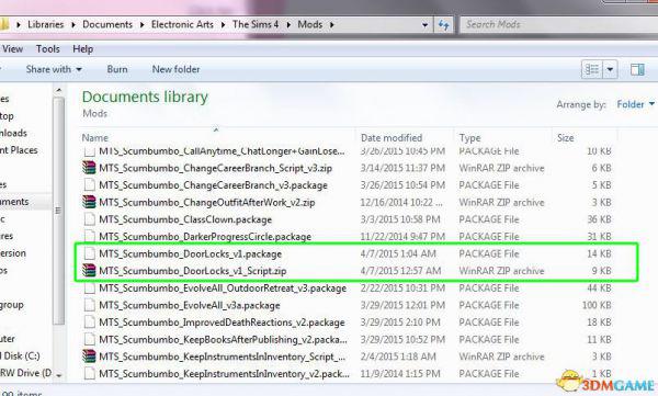 MTS_Scumbumbo_DoorLocks_v2_Script.zip文件不要解压直接放进Mods目录,package文件直接放进Mods目录。
