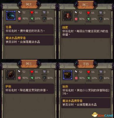 首先我们来看一看第20关boss的资料,第20关boss是魔王,但是它有四个护卫,我们来看看它们的数据: