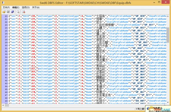 运行工具后点击左上角的文件-----打开DBSF文件,选择下面路径下的 X:SOFTSTARSWD6ECHSWD6EDBF Equip.dbfs文件,如图: