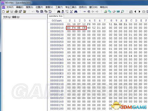 2.用16进制编辑器打开存档文件,第二行前4个数值为存档ID。记下自己的存档ID,下载别人提供的存档,16进制编辑器打开修改为自己的ID保存为savedata.bin