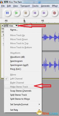 2.然后点击在音乐的名字旁边的小箭头,然后点 Make Stereo Track (如果没得点这项,代表那个音乐已经是那样的设定了,继续第三步骤)。