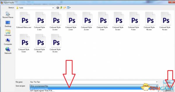 4.把文件模式先改成 Other Uncompressed Files 更改后就去右下角的 Options 把第一个选项换成 RAW (Header-less) 然后第二个选项 Signed 16 Bit PCM。