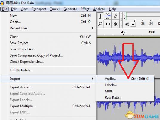 1.首先就是打开编辑软件 Audacity,然后按File>Import>Audio... 引入你想要的歌曲/音乐。
