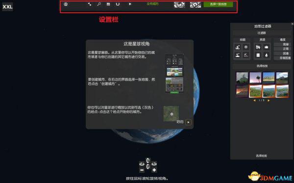 游戏创建菜单顶部设置栏可以选择查看自己正在建造的城市。