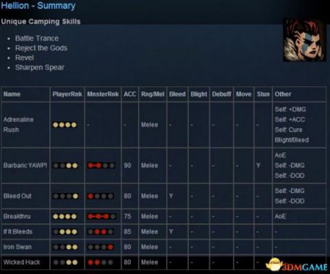 暗黑地牢 全职业全技能属性数据一览表 有哪些技能