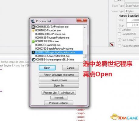 由于上面讲解了如何开启CE,和选中龙腾世纪程序,所以我们这些步骤就略过,直接从选项开讲。