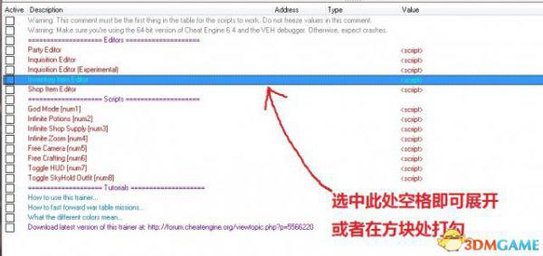 2)下载CE脚本 :点击进入3DM原帖下载最新!