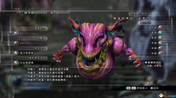 ■本场可以考虑换连锁奖励LV5的武器,我是习惯了提高50%ATB速度的,懒得换;开场JJE偷个状态,奇食腐兽出来BBD慢慢堆boss的break,奇食腐兽基本全程都在,打完又接着来,所以打不打看个人了,扛不住就DHD缓缓,JJE或BBA稳连锁;break掉BOSS的话最好是切AAA先撸掉几只奇食腐兽,留一只最佳,JJE之类的来一发,然后break槽到800%~900%赶紧AAA推几下,此时自己攻击奇食腐兽,这样的话陆行鸟就会去攻击BOSS,有穿甲效果当然不一样,基本都是99999,循环以上步骤,磨死它= =