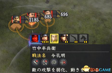 点评:强力Debuff,跟今孔明基本相同,用法也一样。不过减防类一般更有价值,搭配我方强力远程部队可以在低战损下给予对方毁灭性的打击,我对於这个战法的评价比竹中的今孔明更高。