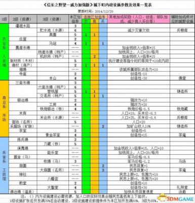 下面对PK版本有变化的城下町设施简单做个分析,先不考虑PK新增的资源设施概率性奖励事件,毕竟随机性太大。先看图: