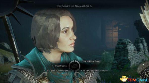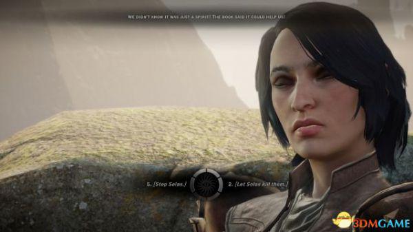 索拉斯对法师的做法非常愤怒,审判官可以阻止他复仇(Stop Solas),或者不干涉这场复仇戏(Let Solas Kill them),选择前者将会降低索拉斯好感,后者则增加好感。