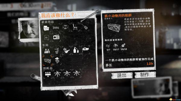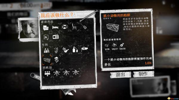 随便寻找点什么,但我也指定了一些优先的:弹簧和食物,我们还需要一个诱捕器,然后就是补上那些家里的该死的洞用的钉子和木板