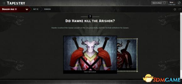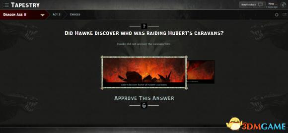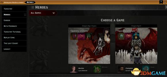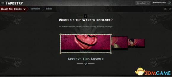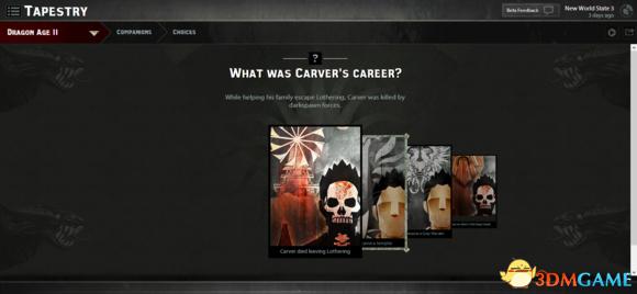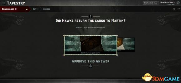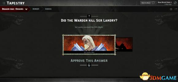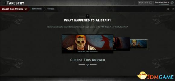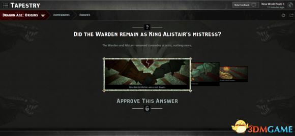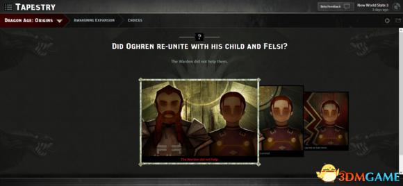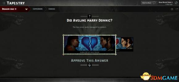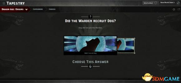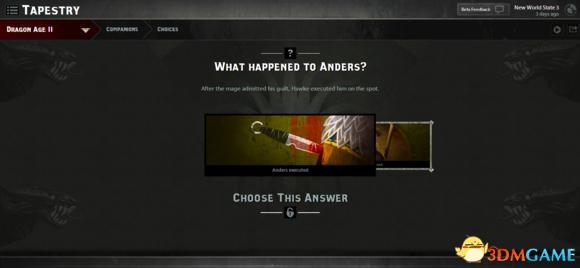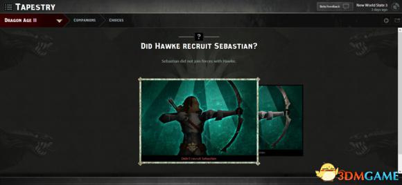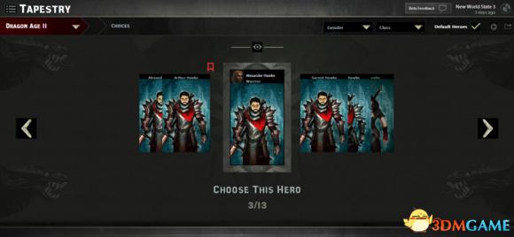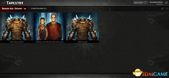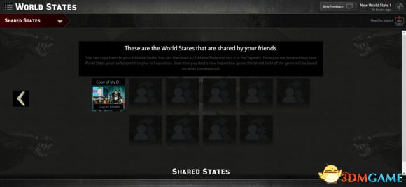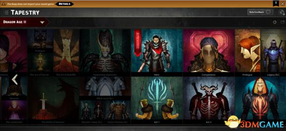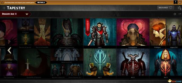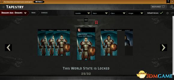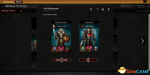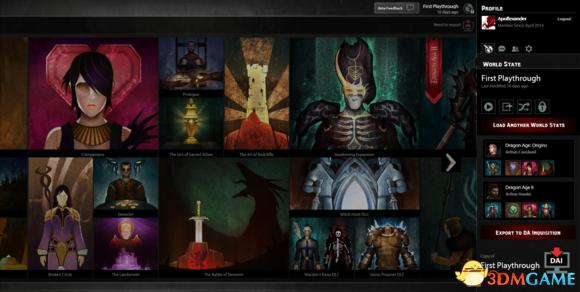 接下来给出了关于你两代主角的一些信息。最后是Export to DA Inquisition,点击后可以将此世界设定为你玩DAI时能够导入的世界。