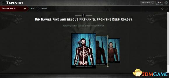 第三项,是否去深渊营救纳扎尼尔。纳扎尼尔的姐妹请你帮忙去深渊打探纳扎尼尔的下落,此任务只有在他存活时才能接到。
