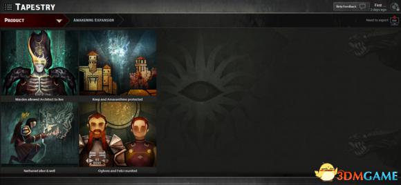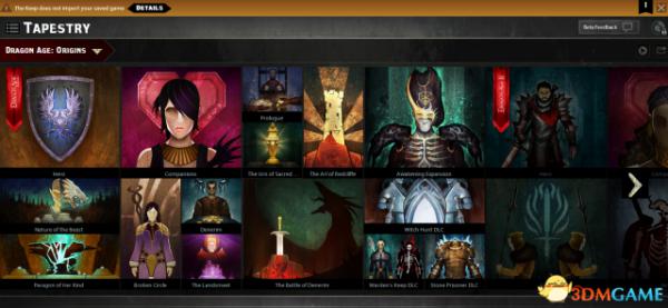 点击左上的菜单可以快速切换至DAO或者DA2。最上方的Tapestry是另一个菜单,包含了一些数据和选项。