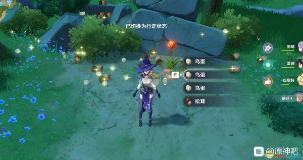 在地图上的这个位置,找到这个火草,然后站在石头上用丽莎一直aaa,周围草丛的耐久是1,用剑砍草丛会出鸟蛋这些,丽莎普攻打火超载爆炸,会打击周围的草丛但是不会损耗耐久,所以通过可以无限的打击来过得松茸。